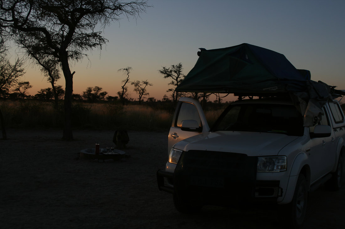 In der Dämmerung, nach über 11 Stunden fahrt erreichten wir das Camp. Stellten unter einer wunderschönen Schirmakazie unser Dachzelt auf, entzündeten ein Lagerfeuer, nahmen ein Glas Rotwein am Feuer und genossen die vollkommene Idylle einer afrikanischen Nacht. Ein weiteres Abenteuer war vollbracht und hinterliess Eindrücke die wir nie mehr vergessen werden. Sich des Lebens bewusst zu werden ist ein gutes Gefühl und bereichert in jedem Fall das eigene Denken.