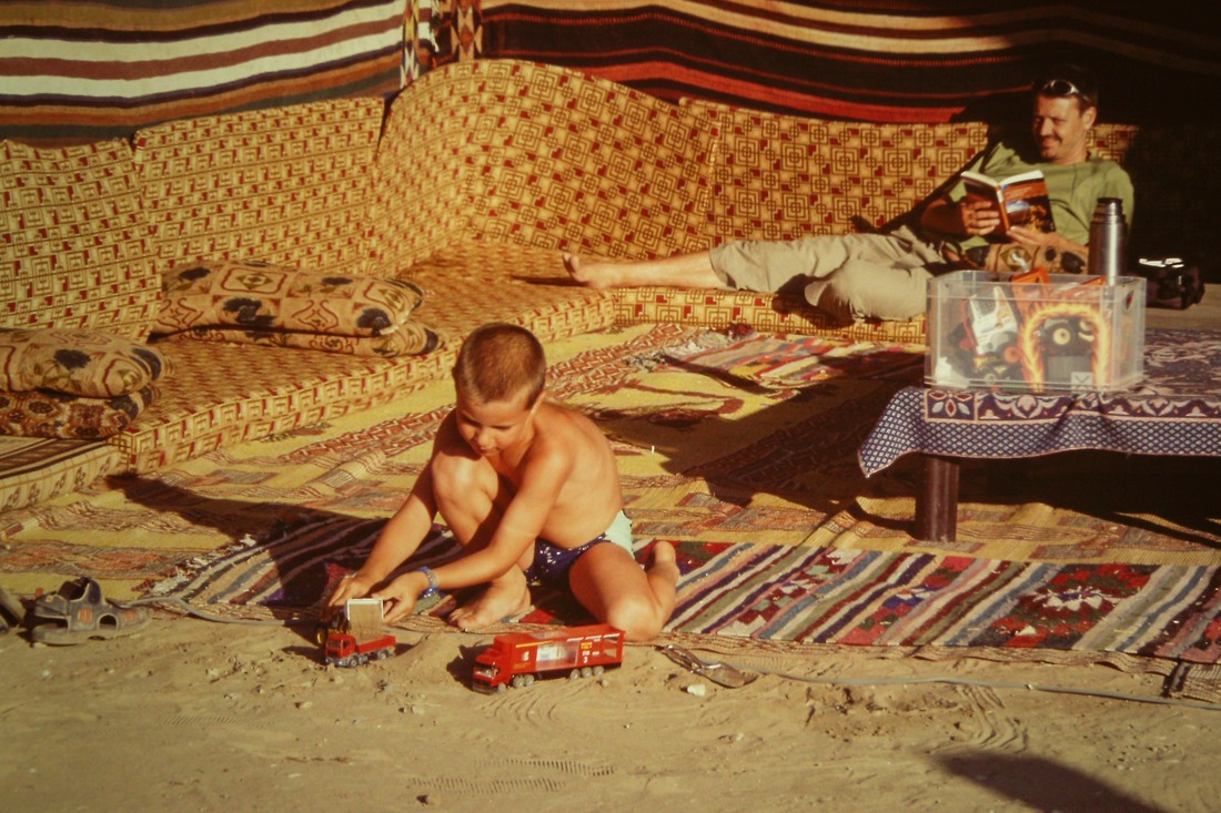 Über eine sehr steile Strasse schlängelt sich das Mitsuchüeli über Serpentinen 400 Meter unter den Meeresspiegel dem toten Meer zu. Raphaels Kopf ist nicht mehr bereit neue Eindrücke ungefiltert und mit voller Kraft einzulassen. Er hat heute noch nicht viel gegessen und scheint ein wenig apathisch. Für uns ist es ein Alarmzeichen, eine Reisepause in einem Hotel einzulegen. So verbringen wir einige Tage am toten Meer und sind jedes Mal von neuem überrascht, wenn unsere Körper schwerelos auf der Wasseroberfläche schweben.