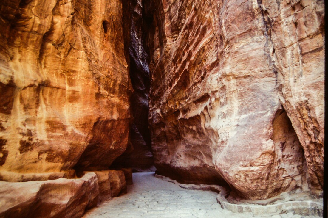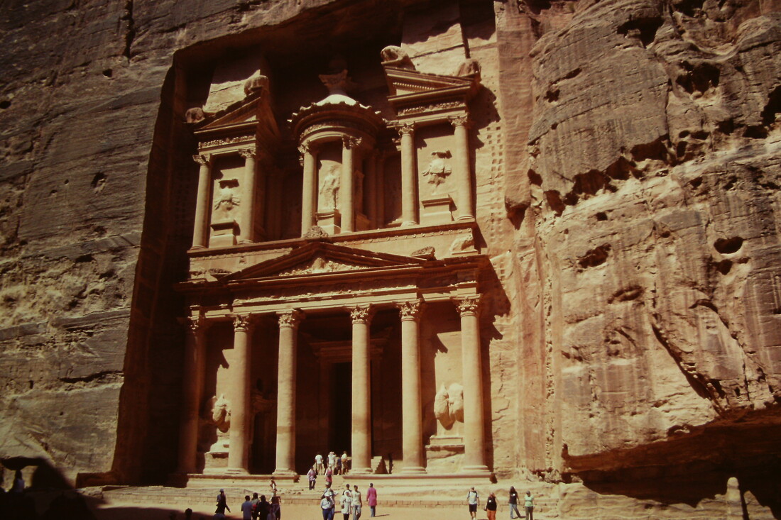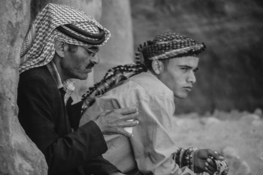 In einem Talkessel zwischen steilen Felshängen liegt verborgen Petra. Etwas ausserhalb der Stadt, in der Wüste, entdecken wir ein Beduinen-Camp. Umgeben von kugeligen Felstürmen stehen in einem natürlichen Hof drei grosse schwarz braune Beduinenzelte. Der Stoff ist traditionell aus Kamelhaar gewoben und mit Teppich und bunten Kissen ausgestattet. Hinter einem dieser Zelte verbirgt sich eine Höhle, eine in den Felsen gehauene Nische. Am Boden mit Teppich ausgelegt und mit farbigen Matratzen, Kissen und flachen Tischen geschmückt, werden wir in eine abermals neue Welt entführt: In die Welt der Beduinen. Wir dürfen einen Hauch von ihrer Kultur und ihrem Leben einatmen. Und obwohl es Mittag ist und die Sonne ihre zerstörerischen Strahlen auf die verbrannte Erde schickt spüren wir hier bei den Beduinen nichts von der sonst üblichen Hitze. Die Beduinen sind stolze, kluge und sehr freundliche Menschen. Sie sind nicht geprägt von Zahlen, Eile und Unruhe (obwohl viele von ihnen auch schon ein Handy besitzen). Bei ihnen bestimmen Sonne und Mond, Regen und Hitze, Kamele und Ziegen, Chai (Tee) und Fladenbrot das Leben.