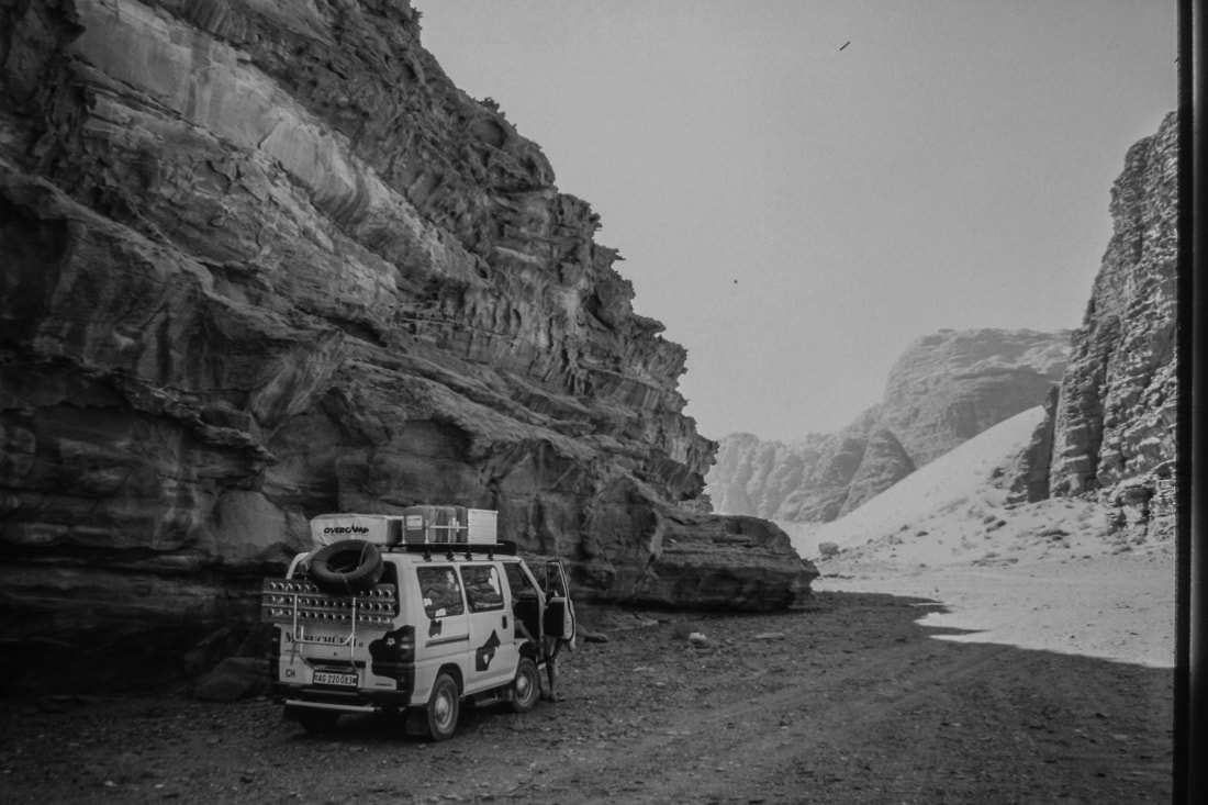 Die Zeit rennt uns langsam davon, denn bei Nacht wollen wir eigentlich nicht fahren. Zu allem Überfluss müssen wir jetzt auch noch den Tank mit dem aus Syrien in Kanistern mitgebrachten Diesel, mit Hilfe unserer elektrischen Pumpe, nachfüllen. Das Licht schwindet langsam, als wir weiter auf dem „Kings Higway“ durch das gelobte Land rollen.