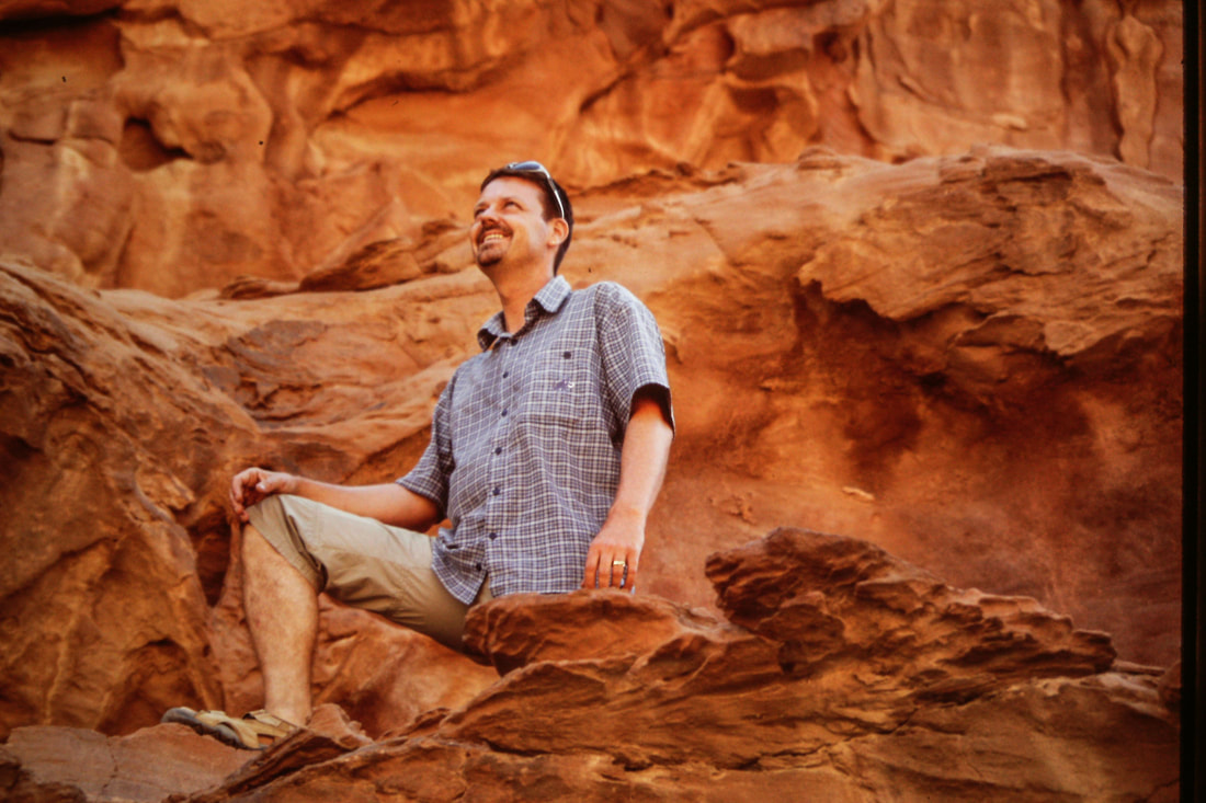 Gegen Abend führt unser Weg dem toten Meer entlang. Zur einen Seite das blasse Blau des Wassers, zur anderen recken sich steile Gipfel dem Himmel entgegen, in allen Farben des Sandsteins. Täler durchschneiden das Massiv in mehrere Teile.