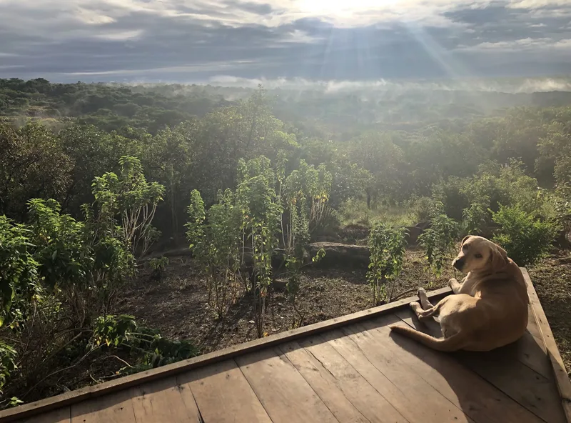 Abends stellen wir immer unseren Kompostkübel vor den Eingang. Die Ginsterkatzen kommen jede Nacht vorbei und schauen, ob es Futter für sie im Kübel hat. Früchte wie Mango oder Banane lieben sie besonders.